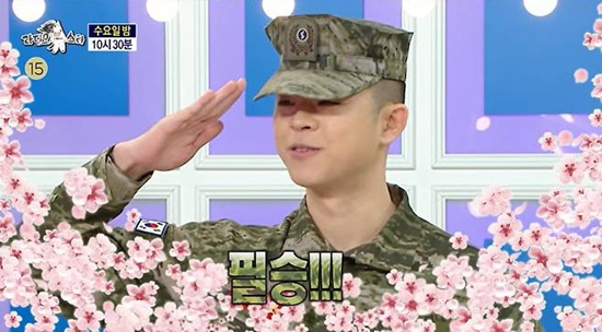 녹화 당일 오전 전역을 한 그리는 군복을 입은 모습으로 스튜디오에 등장했다.