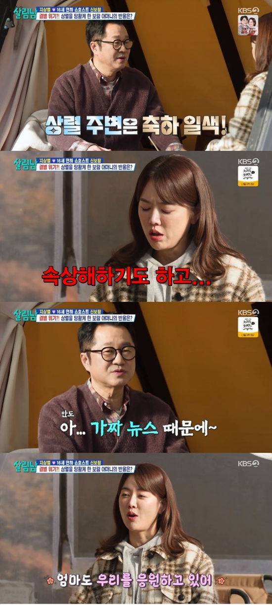 신보람은 "거짓말 기사를 보고 엄마가 속상해 했다. 별얘기가 다 나오니까. 그런 것 때문에 걱정하는 거고 우리가 만나는 건 엄마도 응원하고 좋아한다"고 했다.