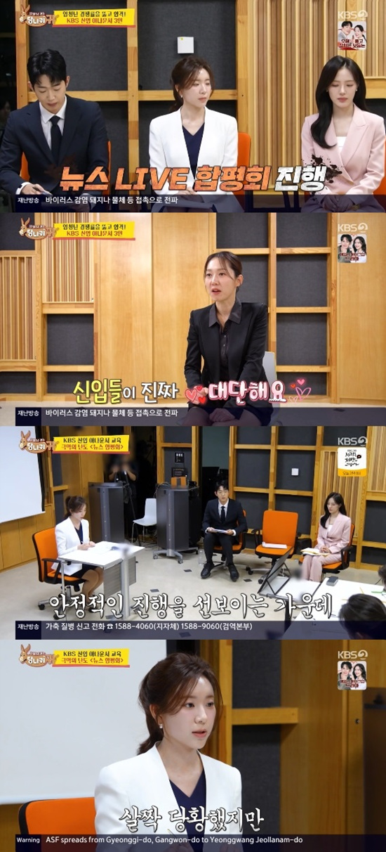 1일 방송된 KBS 2TV '사장님 귀는 당나귀 귀'에서는 엄지인이 신입 아나운서들의 뉴스 합평회 현장을 공개해 눈길을 끌었다.