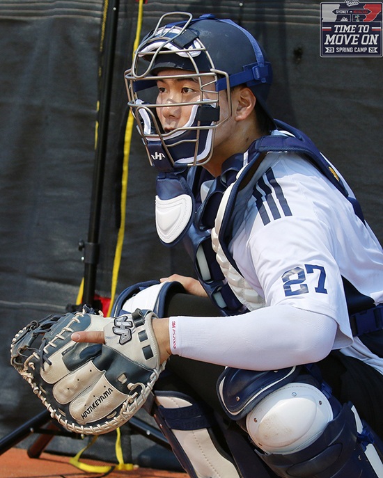 포수 포지션 특성상 훈련 체력 소모는 크다. 윤준호 역시 "솔직히 많이 힘들다"고 웃으며 말했다. 그는 "조인성 배터리코치님께서 파이팅이 넘치시고 운동량도 많은 편이라 쉽지는 않다"면서도 "그만큼 얻어가는 게 많다. 포수조끼리 서로 의지하면서 버티고 있다"고 전했다.