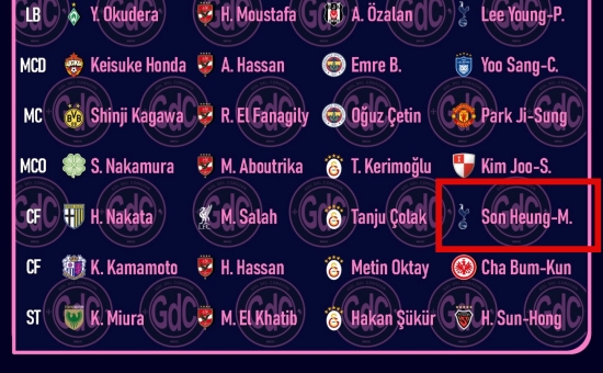 그리고 공격진에 차범근과 황선홍, 그리고 손흥민이 현역 선수로 유일하게 이름을 올렸다.