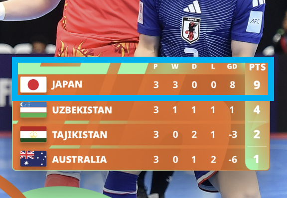 일본 풋살 대표팀은 1일(한국시간) 인도네시아 자카르타의 인도네시아 아레나에서 열린 2026 AFC 풋살 아시안컵 조별리그 C조 최종전에서 우즈베키스탄에 2-1 역전승을 거뒀다.