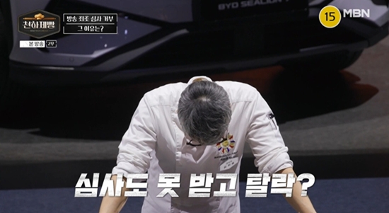'천하제빵' 1라운드 규칙상, 심사위원 전원이 동의할 경우 심사 자체를 거부할 수 있는 룰이 적용돼 있었고, 해당 기준에 따라 오세성은 심사 없이 탈락하게 됐다.