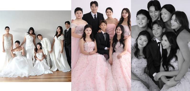 공개된 영상과 사진에는 이동국과 이수진, 그리고 다섯 자녀가 함께한 화사한 가족사진 촬영 모습이 담겼다. 이동국 부부는 단정한 블랙 수트와 드레스를 맞춰 입었으며, 자녀들 또한 드레스를 착용한 채 청순한 분위기를 자아내 눈길을 끌었다.