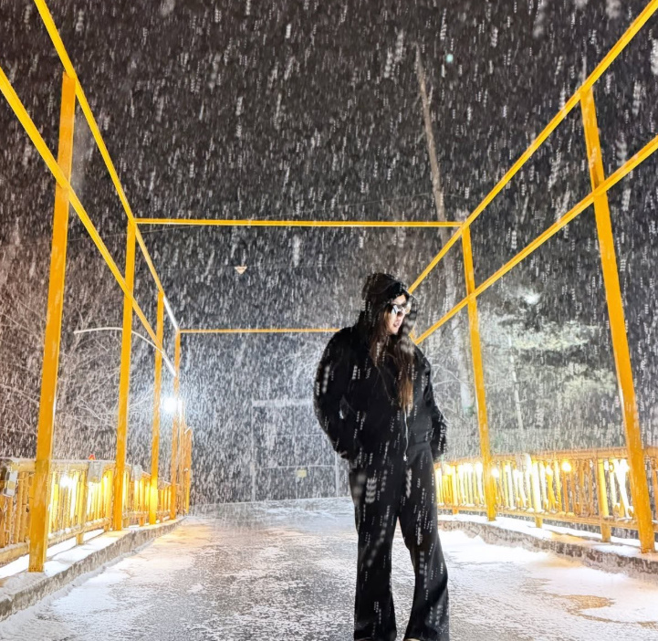 사진 속 풍자는 올블랙 패션에 선글라스를 착용한 채, 눈이 쏟아지는 다리 위에서 포즈를 취하고 있다. 한층 슬림해진 몸매와 세련된 분위기가 시선을 사로잡는다.