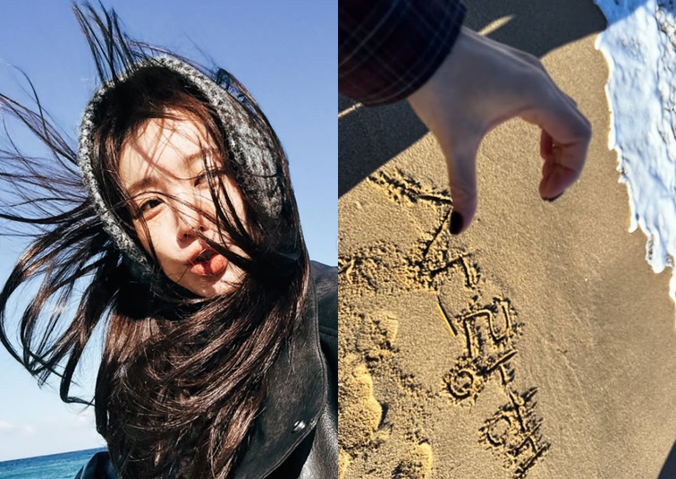공개된 사진 속 윤은혜는 겨울 바닷가를 배경으로 포즈를 취하고 있는 모습. 세찬 바람에 머리카락이 흩날리는 가운데도 자연스러운 표정을 짓고 있다. 이어진 사진에서는 모래사장 위에 "사랑해"라는 문구가 적혀 있고, 윤은혜는 손으로 반쪽 하트 포즈까지 취하며 사랑을 강조했다.