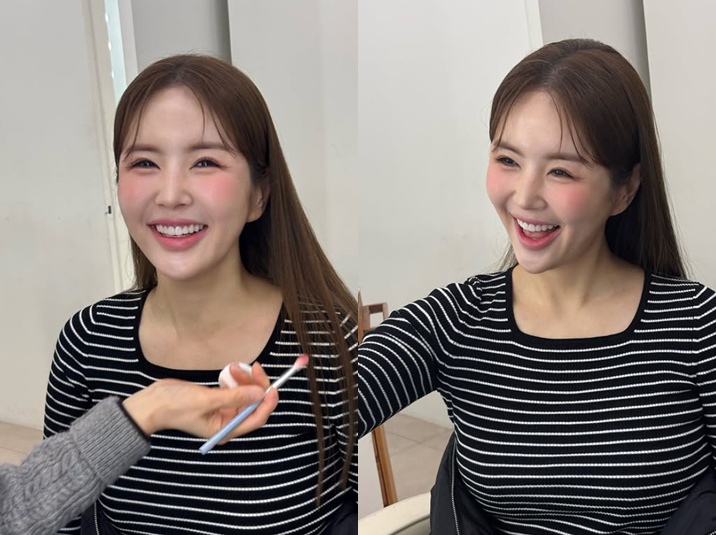 공개된 사진 속 장영란은 메이크업을 받으며 환하게 웃고 있는 모습이다. 스트라이프 상의를 입고 핑크빛 치크 메이크업으로 화사한 분위기를 더했으며, 특유의 밝은 에너지와 유쾌한 표정이 눈길을 끌었다.