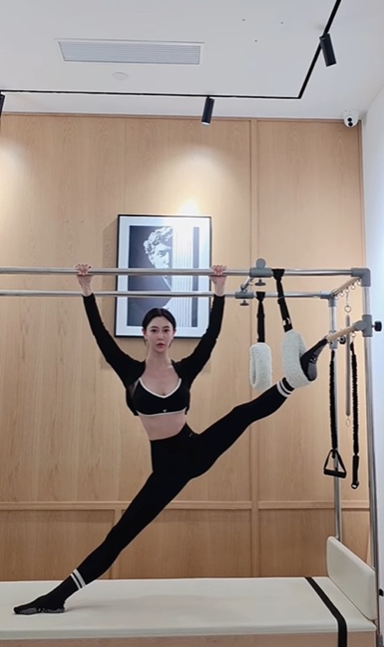 군살 없는 탄탄한 보디라인을 자랑한 클라라는 남다른 유연함으로 필라테스 동작들을 소화하고 있어 눈길을 모은다.