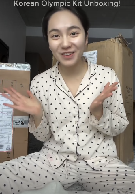 '코리아 올림픽 키트 언박싱'이란 제목 아래 임한나는 파격적인 잠옷 차림으로 등장했다. 그러더니 트렁크 가방을 열거 점퍼와 경량 패딩 등 여러 옷을 입으며 신나는 표정을 지었다. 특히 개회식에 입고 나갈 흰색 해딩을 입은 뒤엔 정말 개회식에 등장하는 선수처럼 두 손을 흔들어 보이기도 했다.