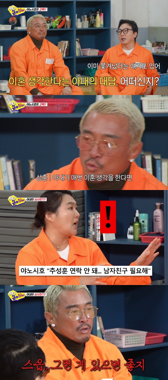 추성훈은 2일 방송된 SBS 신규 예능프로그램 '아니 근데 진짜!'에서 야노 시호가 최근 한국 예능프로그램에 출연해 이혼에 대해 언급한 것과 관련해 솔직한 생각을 전했다.