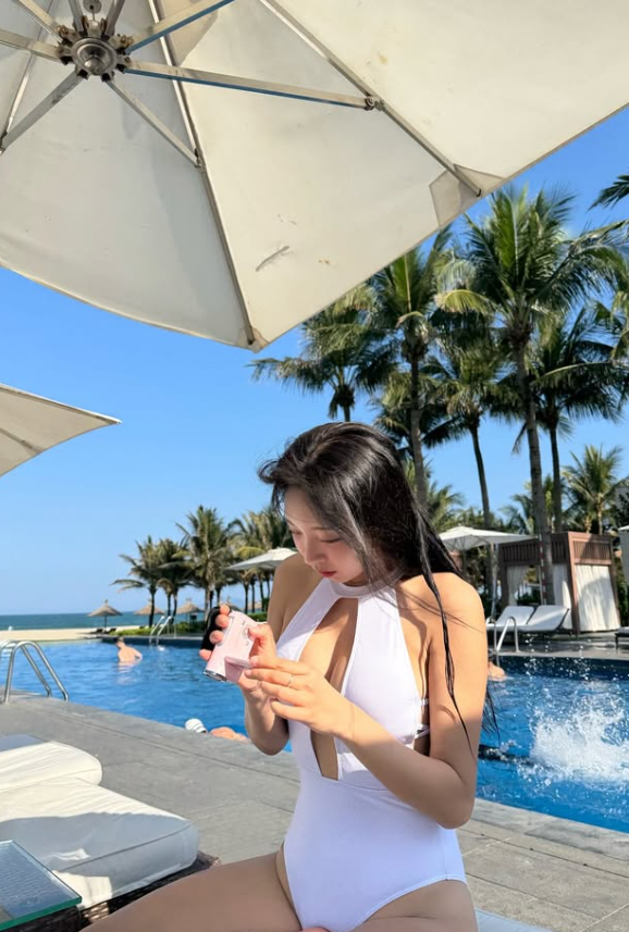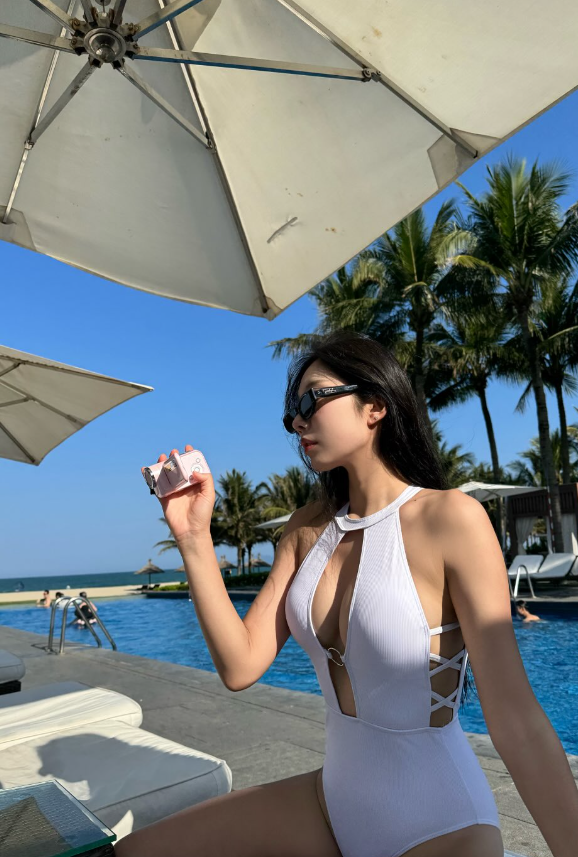 김수현은 최근 자신의 소셜미디어(SNS) 인스타그램에 수영복을 입은 채 수영장에서 여가를 즐기는 모습을 공개했다.