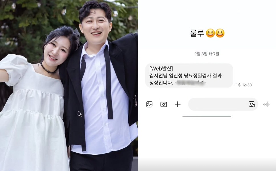 공개된 사진에는 정숙이 최근 진행한 임신성 당뇨 정밀 검사 결과 문자 내역이 담겨 있었다. 검사 결과 정상 판정을 받은 내용이 포함돼 있어 눈길을 끌었다.
