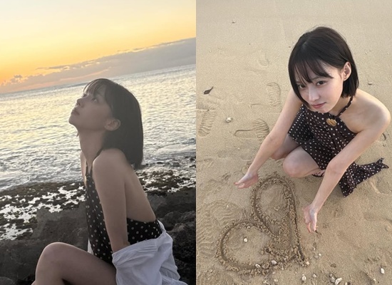 또한 윈터는 모래사장에 쪼그려 앉아 손가락으로 커다란 하트를 그리는 등 귀여운 단발 스타일링에 사랑스러운 매력까지 드러냈다.