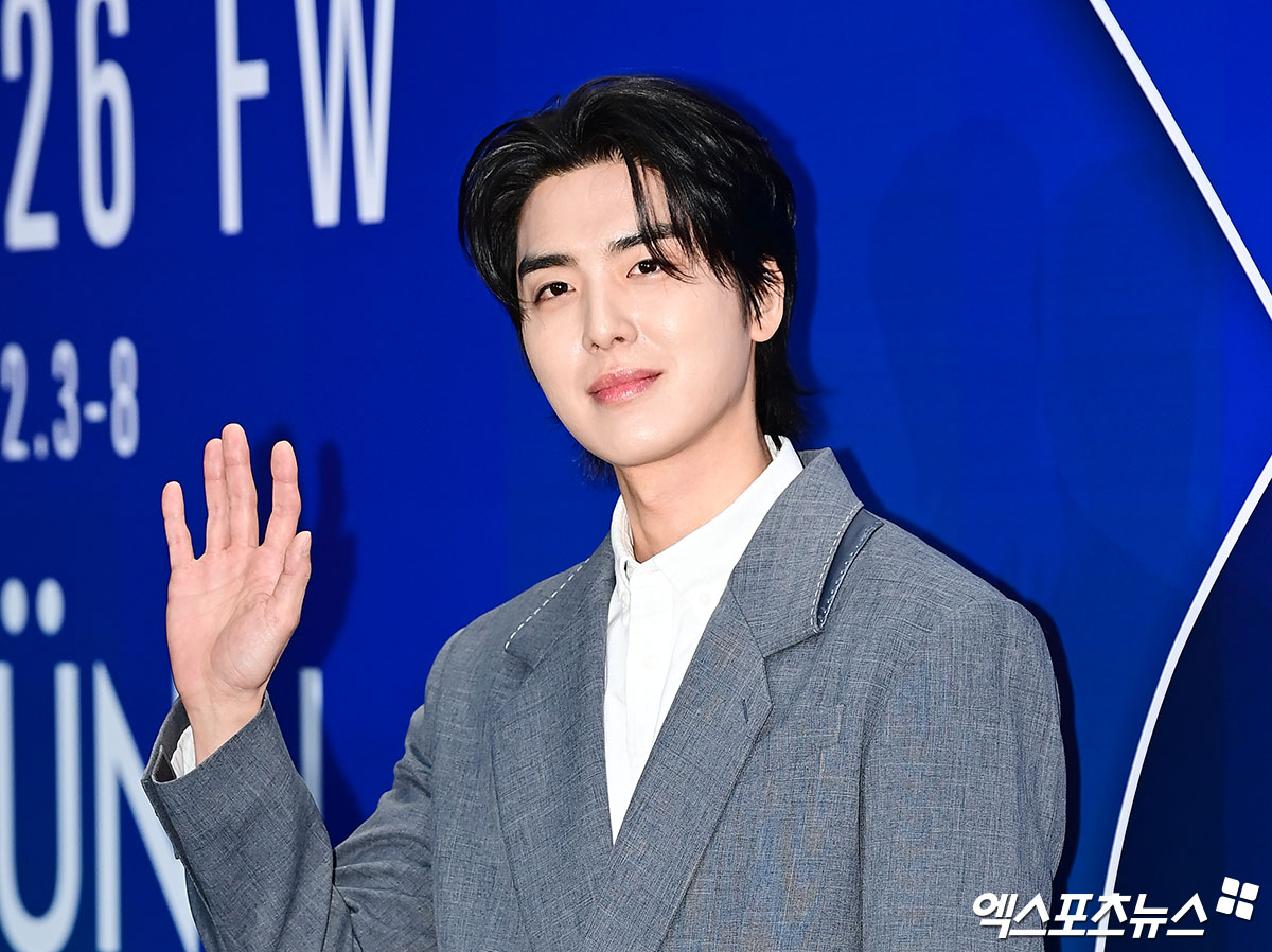 이날 뮌 컬렉션 쇼에 참석한 배우 서재우가 포토타임을 갖고 있다.