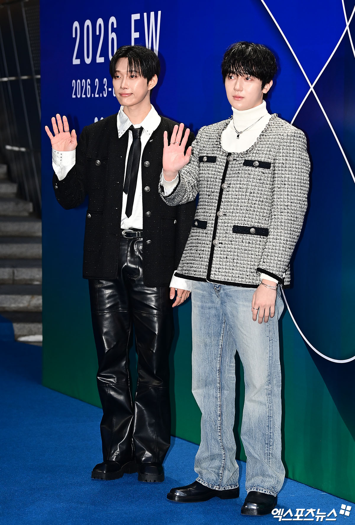 이날 뮌 컬렉션 쇼에 참석한 오메가엑스 재한, 예찬이 포토타임을 갖고 있다.