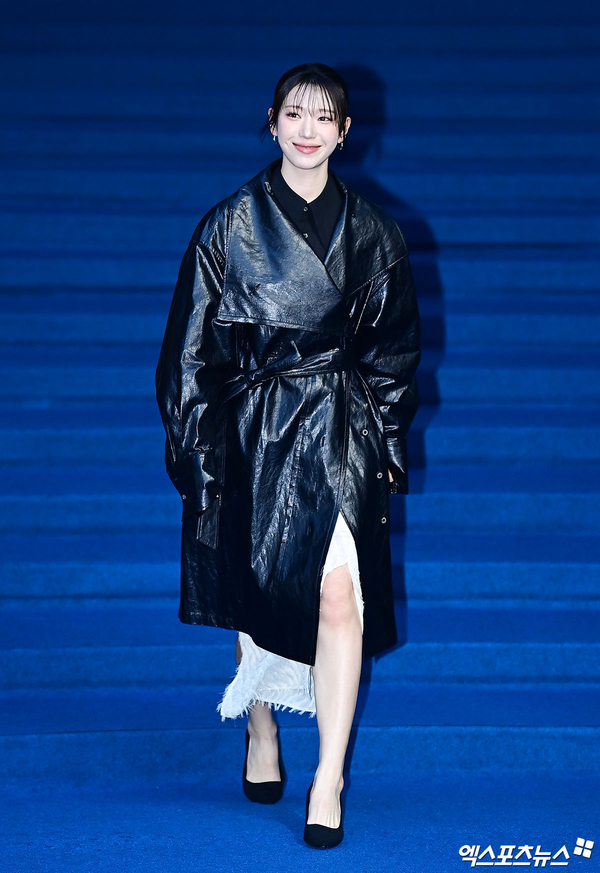 여기에 코트 자락 아래로 살짝 드러나는 화이트 프린지 스커트를 매치해 반전의 청순 매력을 선보였다. 거친 질감의 프린지 디테일은 블랙 코트의 묵직함을 덜어내면서 룩에 경쾌한 입체감을 더했다.