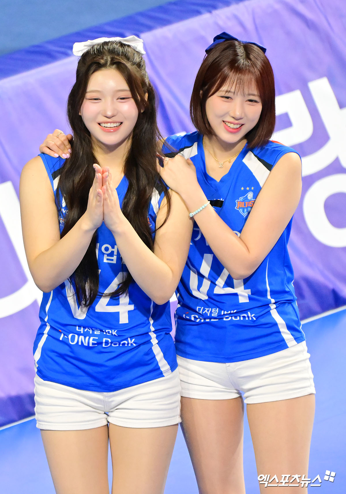 특히 이날 김가현은 단정하면서도 청량한 스타일링으로 눈길을 끌었다. 파란색 유니폼과 화이트 숏팬츠 조합에 리본 헤어 액세서리를 더해 깔끔하면서도 발랄한 이미지를 완성했다.