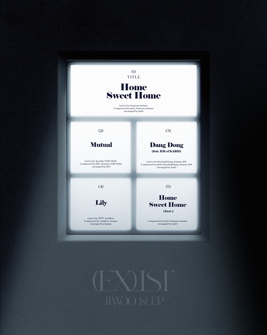 공개된 트랙리스트 이미지에는 창문이 등장, 어둠에 스며든 빛이 오묘한 분위기를 자아낸다. 이에 따르면, '(EX)IST'에는 타이틀곡 'Home Sweet Home'을 포함해 수록곡 'Mutual', 'Dang Dong (feat. BM of KARD)', 'Lily', 'Home Sweet Home (Inst.)' 등 총 5곡이 수록됐다.