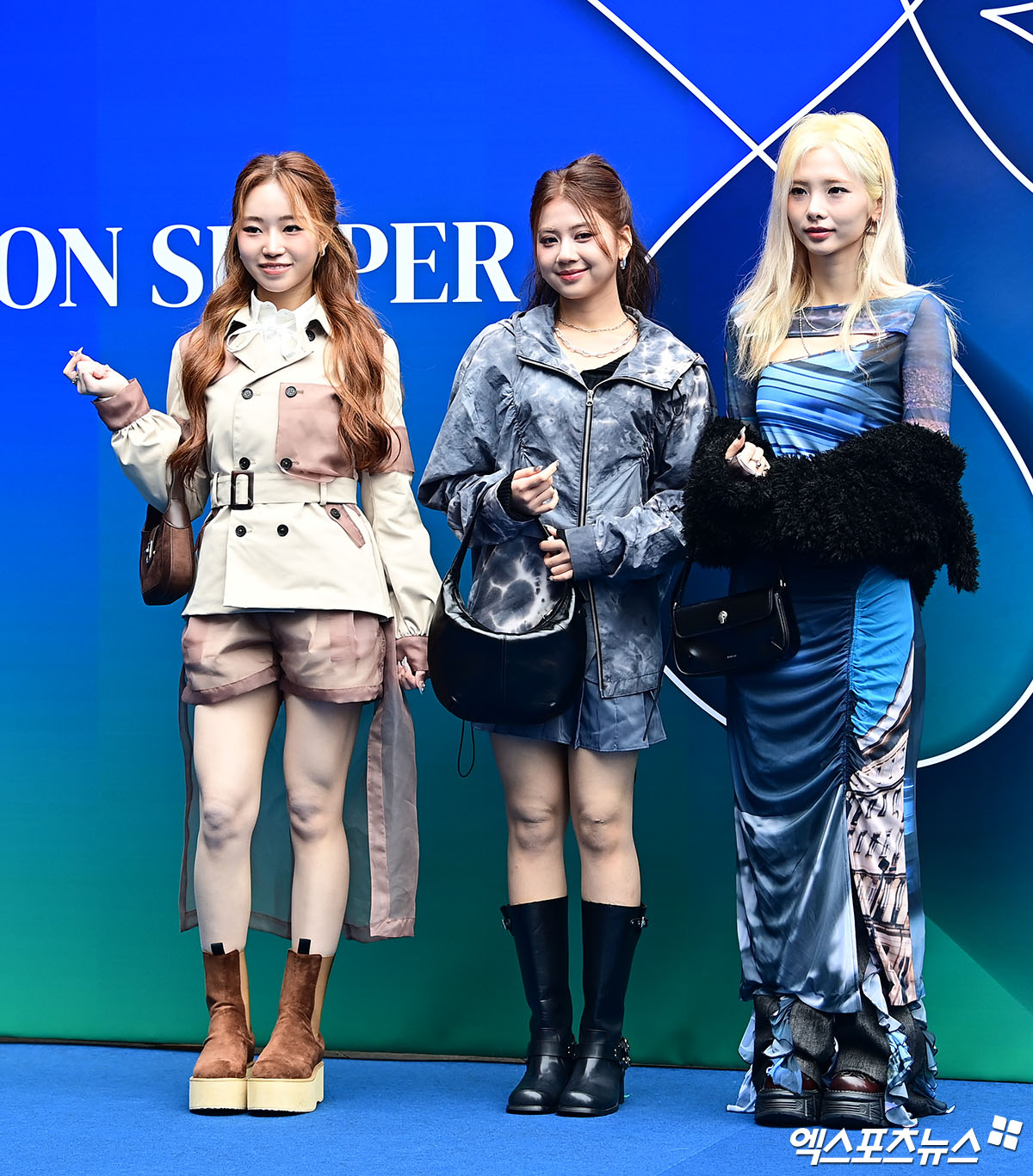 이날 페노메논시퍼 컬렉션 쇼에 참석한 퀸즈아이 아윤, 키리, 진율이 포토타임을 갖고 있다.