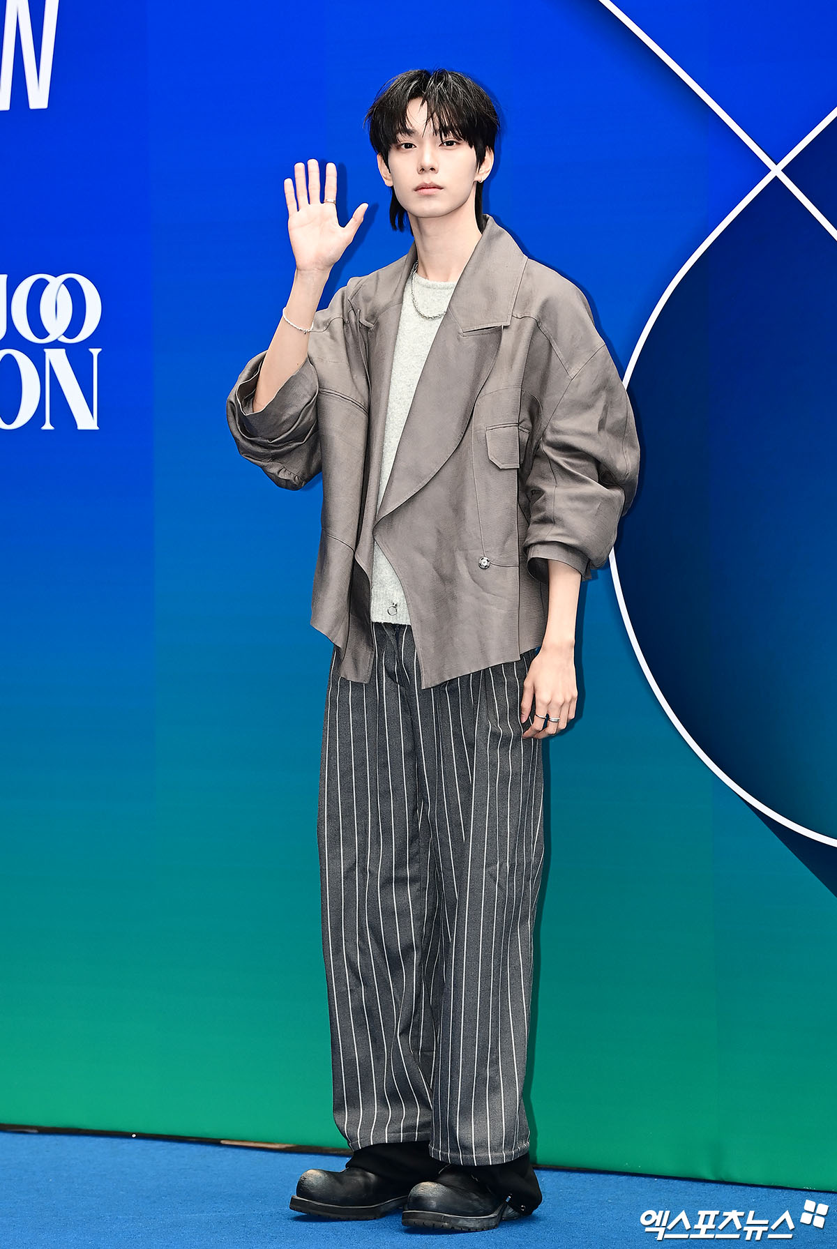 이날 곽현주컬렉션 쇼에 참석한 가수 최립우가 포토타임을 갖고 있다.