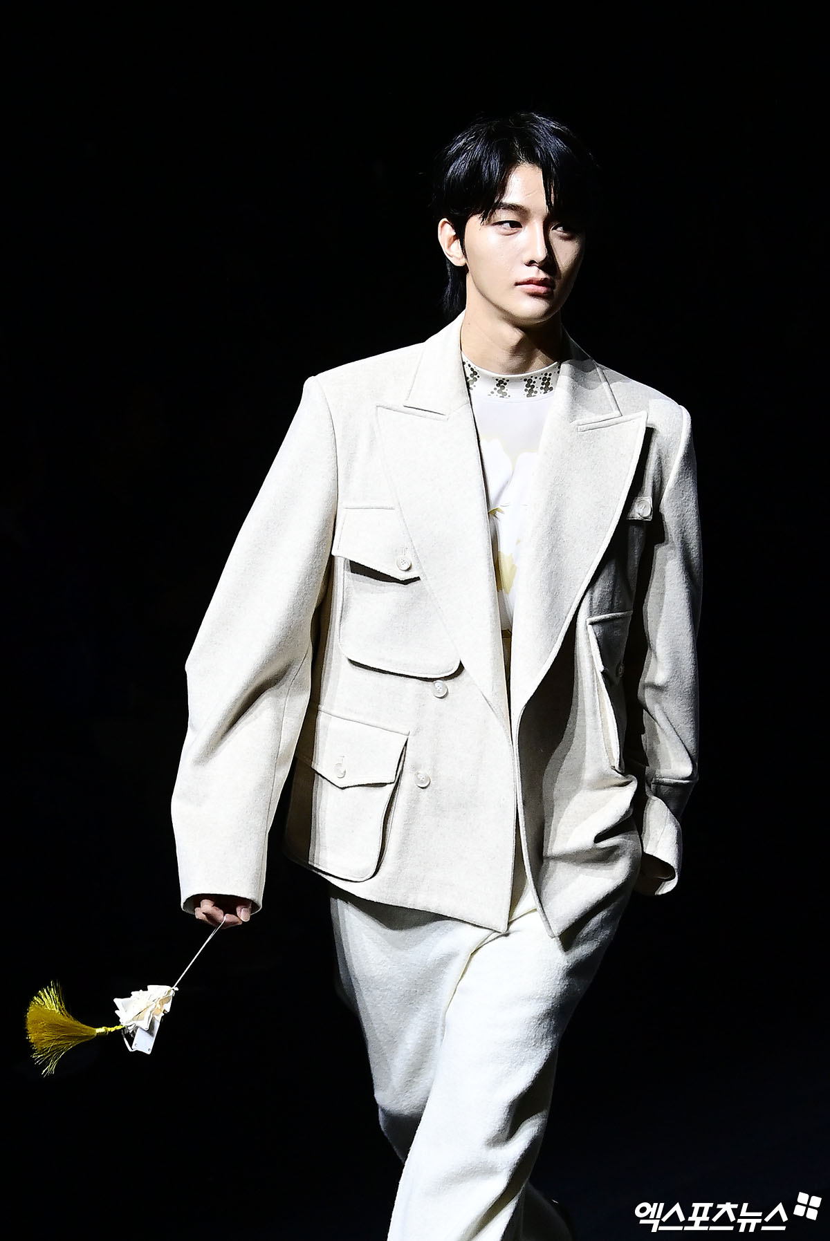 이날 곽현주컬렉션 쇼에 참석한 드리핀 차준호가 런웨이를 걷고 있다.