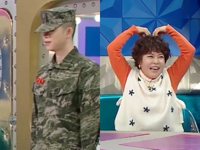 특히 군복을 입고 늠름하게 서 있는 김구라의 아들 그리의 모습이 눈길을 끌며 그런 그리를 조혜련은 눌란 표정으로 쳐다보고 있다.