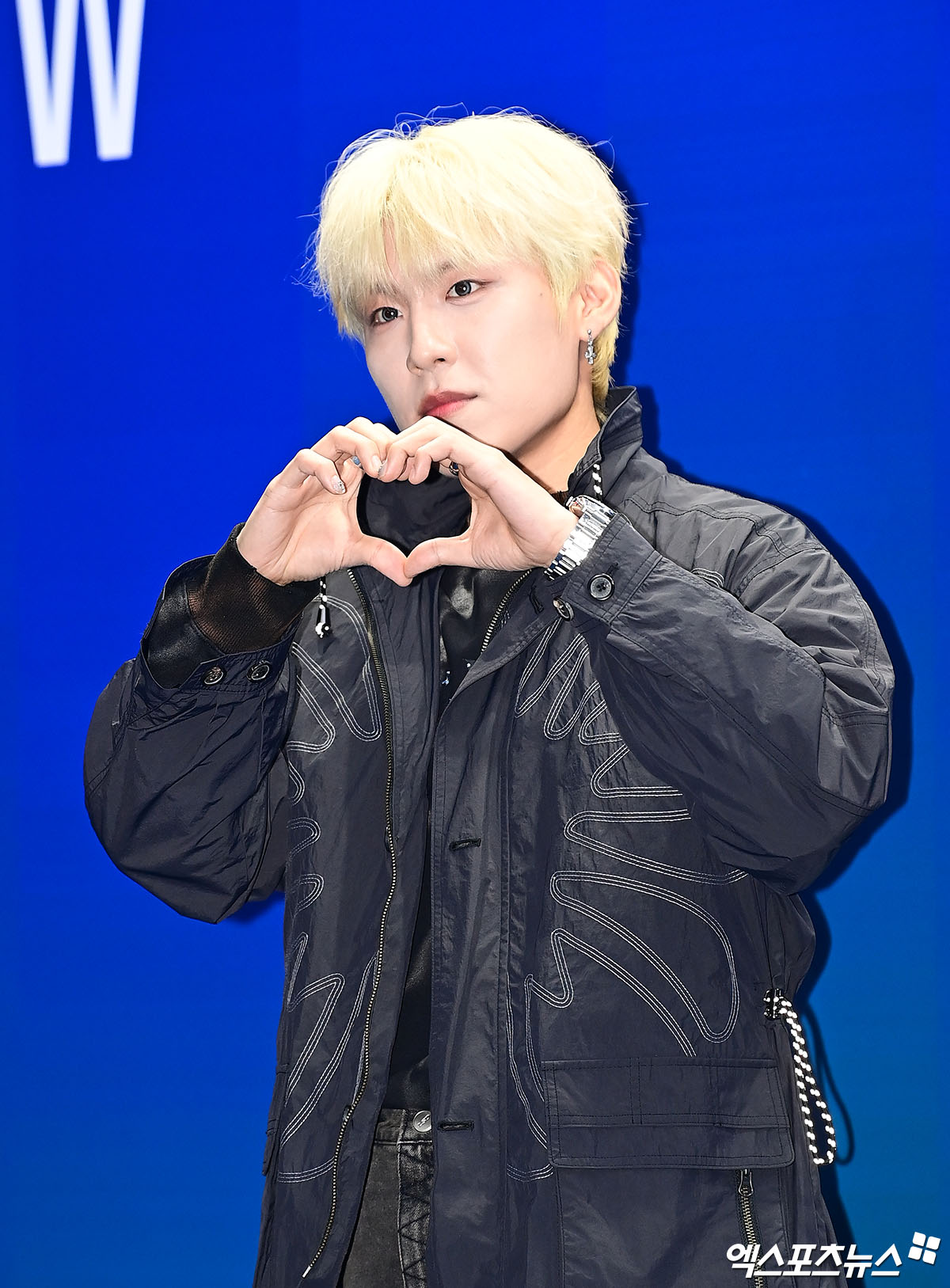 이날 얼킨 쇼에 참석한 AB6IX 박우진이 포토타임을 갖고 있다.