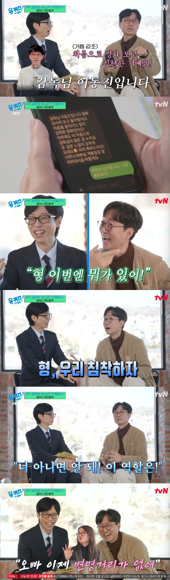 지난 4일 방송된 tvN 예능 프로그램 '유 퀴즈 온 더 블럭'에서는 영화 '왕과 사는 남자'의 장항준 감독, 데뷔 54년 차 국민배우 이덕화가 출연해 이야기를 나눴다.