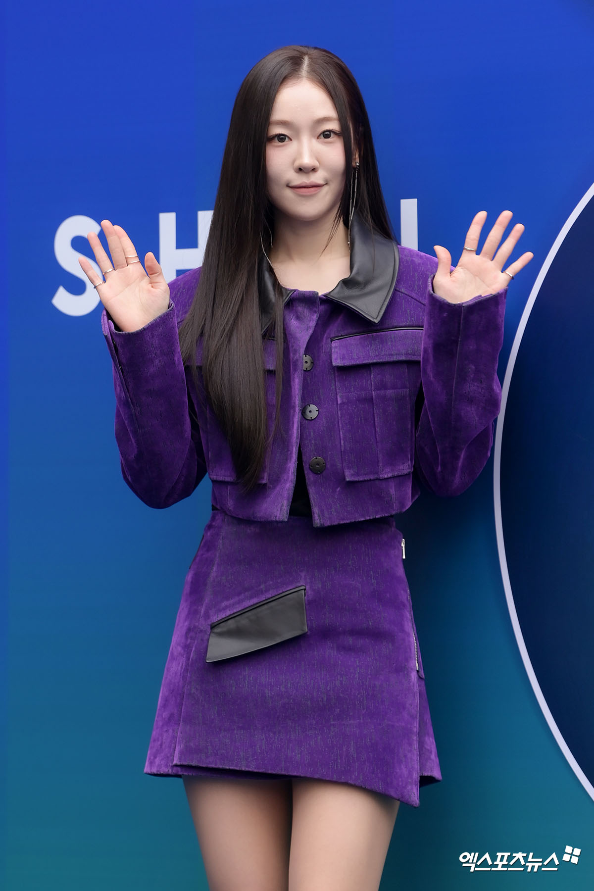 이날 한나신 쇼에 참석한 배우 송지우가 포토타임을 갖고 있다.