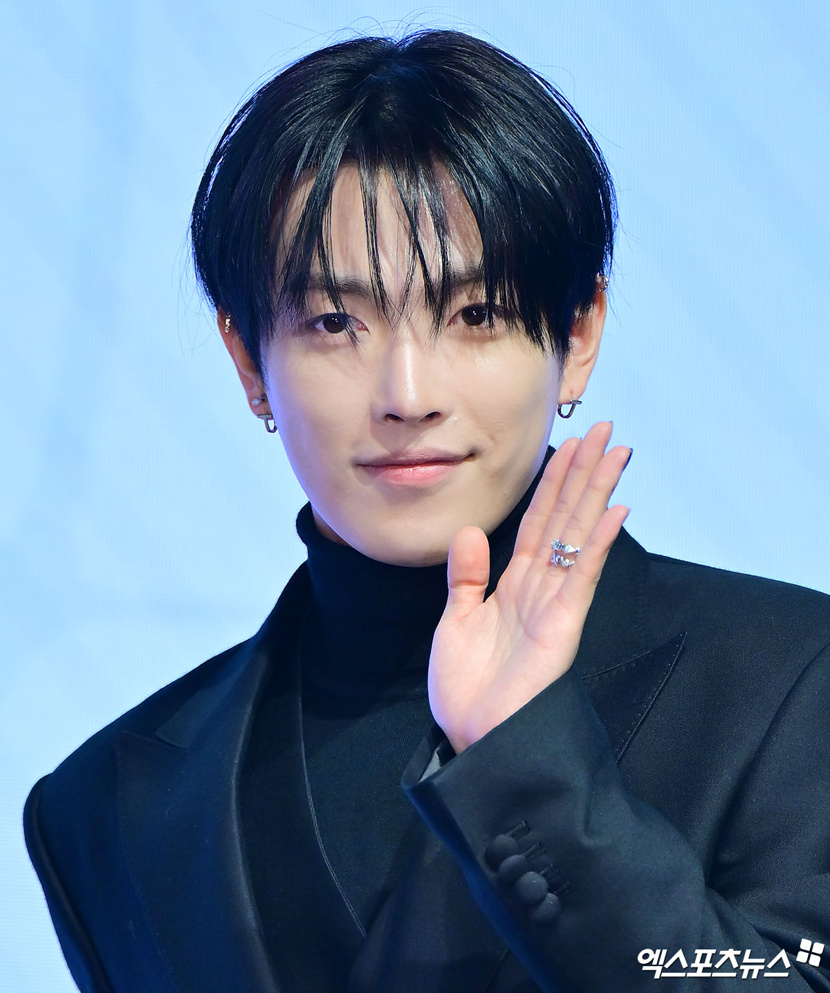 이날 기자간담회에 참석한 에이티즈 홍중이 포즈를 취하고 있다.