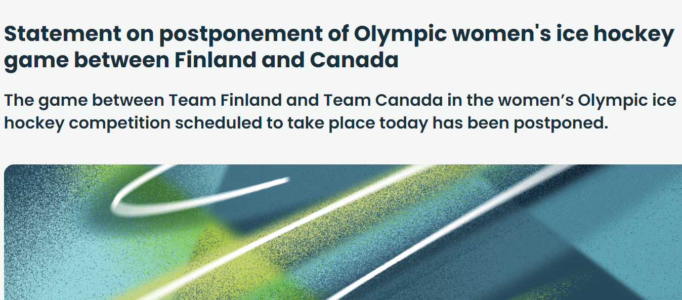 당초 핀란드는 대회 첫날인 이날 밀라노 로 아레나에서 '디펜딩 챔피언' 캐나다와 A조 조별리그 1차전을 치를 예정이었다. 하지만 경기 당일 오전 핀란드 선수단 내 질병 이슈가 보고되면서 일정이 급변경됐다.