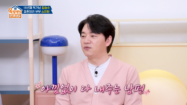 이어 김숙은 김승수의 재산을 언급하며 "지금 자가가 2채가 있는데, 결혼하면 하나를 아내에게 주신다는 얘기가 있더라"라고 오픈했다. 김승수는 "원하면 뭐든. 같이 살 사람이면 뭐든 줄 수 있다"며 예비 사랑꾼 면모를 드러냈다.