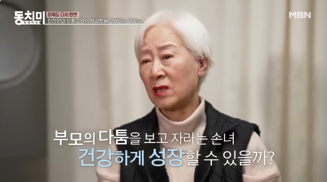 이날 함소원의 모친은 "계속 왔다갔다하면 애(혜정)가 헷갈린다"며 이혼 후에도 동거하는 부모를 봐야하는 손녀를 걱정했다.