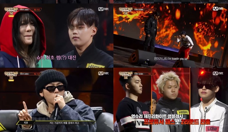 이번 시즌 새롭게 도입된 ‘지옥의 송캠프’는 총 3라운드에 걸쳐 진행되는 미션으로, 모든 라운드에서 살아남아야만 다음 관문으로 진출할 수 있다. 첫 번째 라운드는 1:1 계급 배틀로, 하이레벨 래퍼(1위~36위)가 로우레벨 래퍼(37위~73위)를 지목해 1대1 랩 배틀을 펼치는 방식으로 진행됐다.