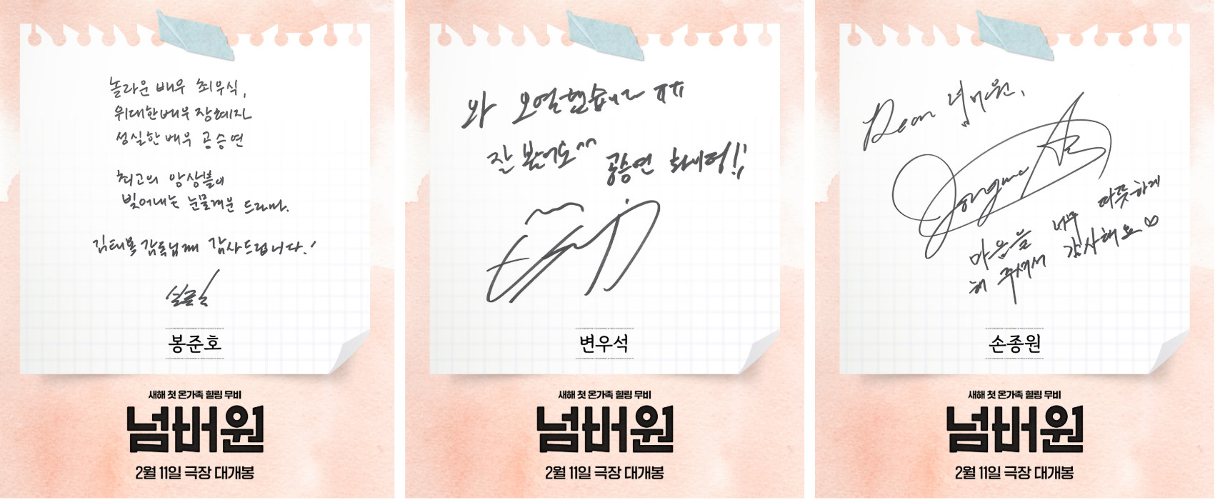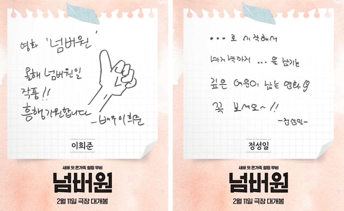 (엑스포츠뉴스 오승현 기자) 영화 '넘버원'이 감독, 배우, 셀럽들의 친필 추천사를 공개했다.