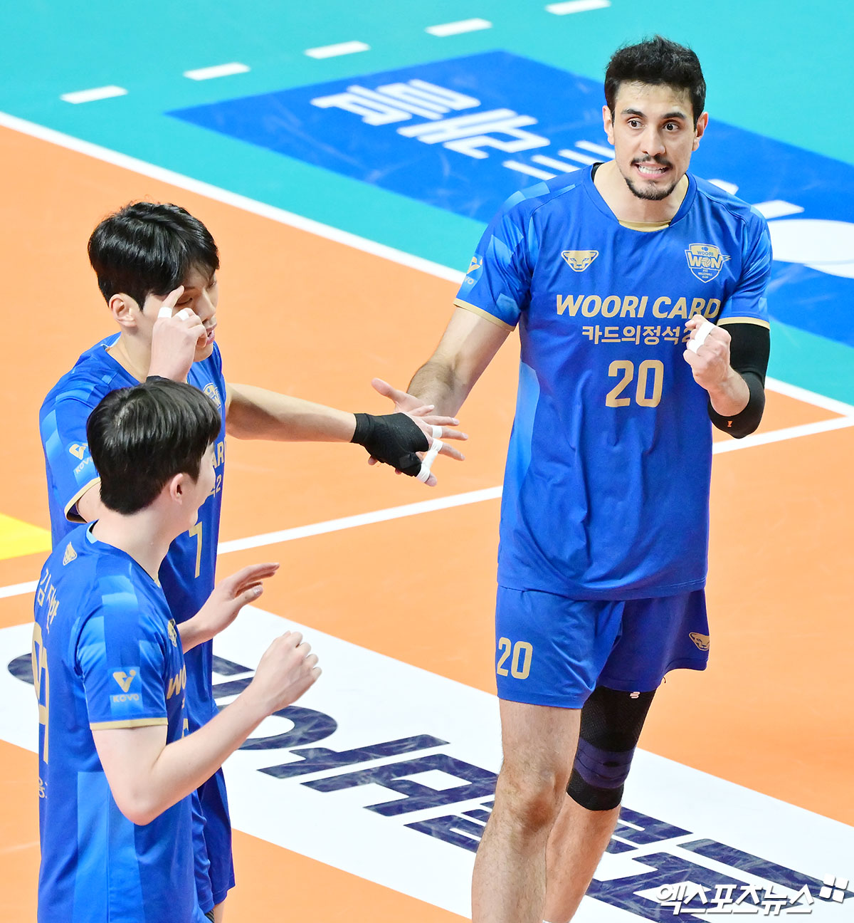 (엑스포츠뉴스 장충, 김한준 기자) 6일 오후 서울 장충체육관에서 열린 '진에어 2025-2026 V-리그' 우리카드와 현대캐피탈의 경기, 우리카드 아라우조가 기뻐하고 있다.