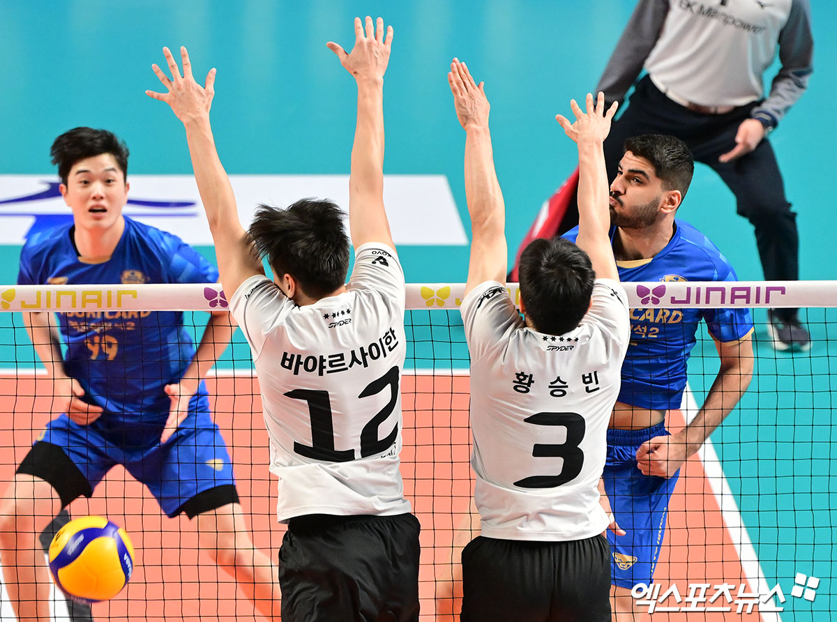(엑스포츠뉴스 장충, 김한준 기자) 6일 오후 서울 장충체육관에서 열린 '진에어 2025-2026 V-리그' 우리카드와 현대캐피탈의 경기, 우리카드 알리가 공격을 시도하고 있다.