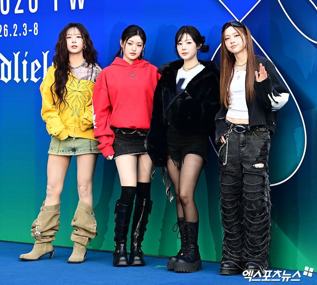 이날 에드리엘로스 쇼에 참석한 피프티 피프티 하나, 아테나, 예원, 문샤넬이 포토타임을 갖고 있다.