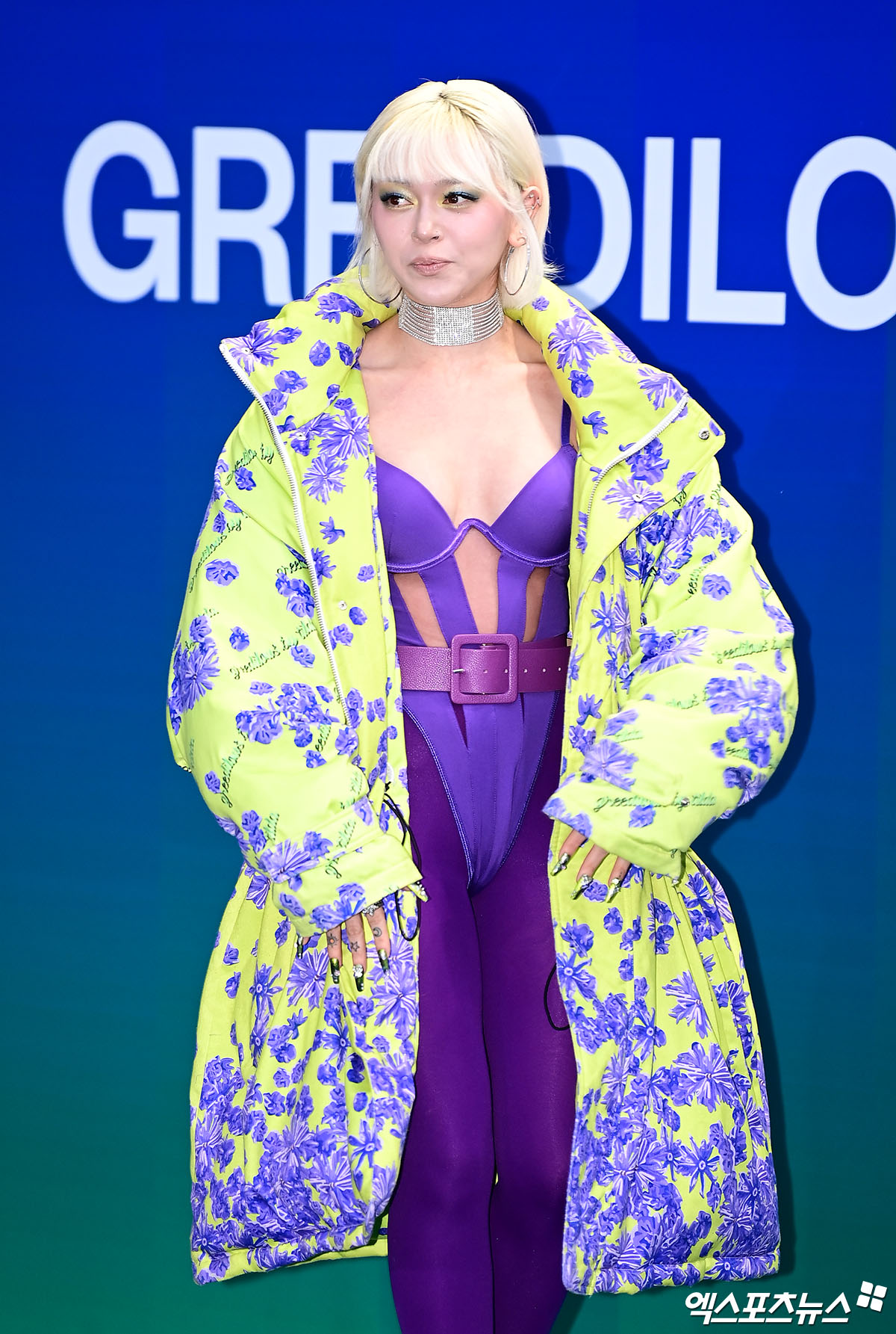 이날 그리디어스 쇼에 참석한 가수 알렉사가 포토타임을 갖고 있다.
