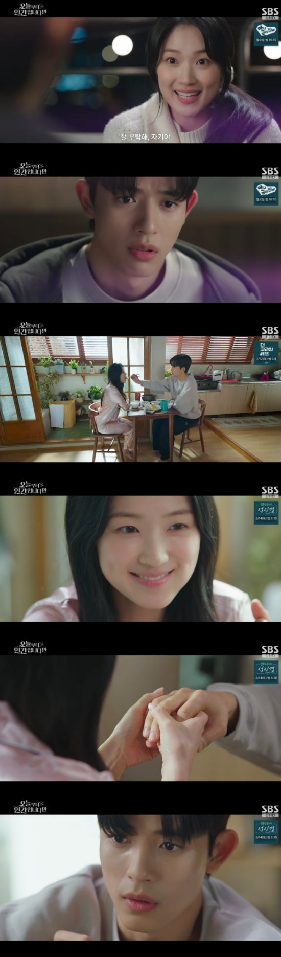 지난 7일 방송된 SBS 금토드라마 '오늘부터 인간입니다만' 8회에서는 운명을 되돌리기 전 연애를 하기로 한 은호(김혜윤 분)와 강시열(로몬)의 평범하지만 달달하게 데이트를 하는 모습이 그려졌다.