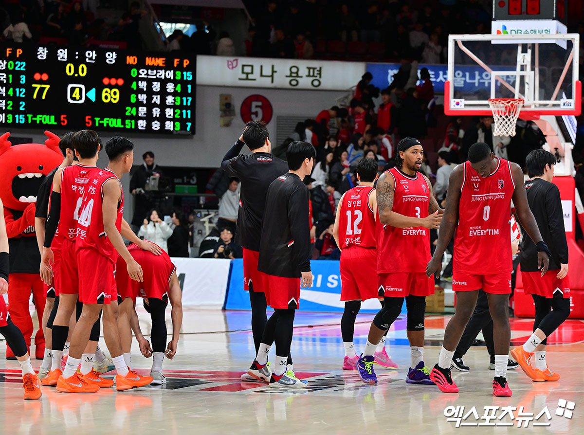 (엑스포츠뉴스 안양, 김한준 기자) 8일 오후 경기도 정관장 아레나에서 열린 2025-2026 LG전자 프로농구 안양 정관장과 창원 LG의 경기, LG가 정관장에 77:69로 승리했다.