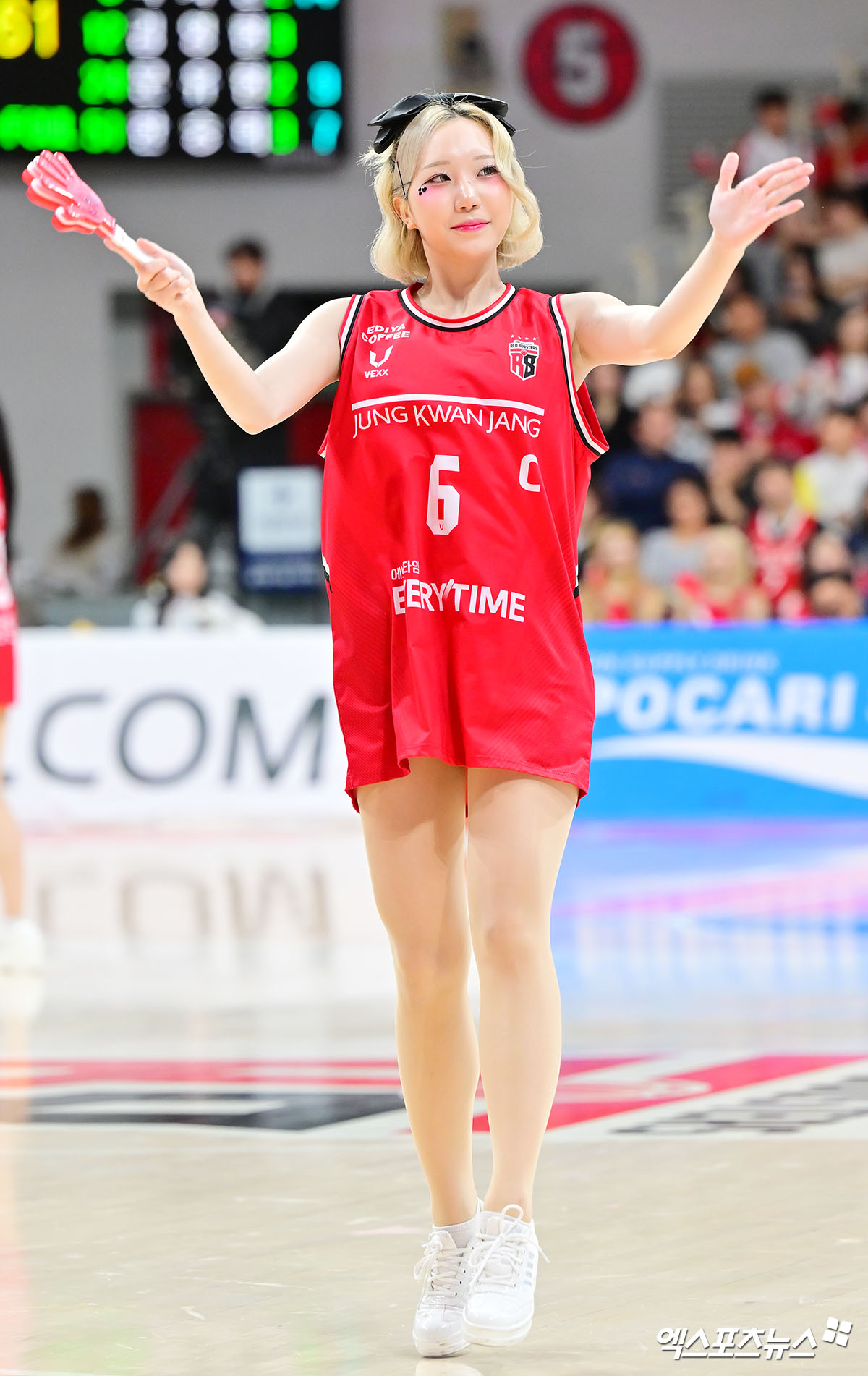 (엑스포츠뉴스 안양, 김한준 기자) 8일 오후 경기도 정관장 아레나에서 열린 2025-2026 LG전자 프로농구 안양 정관장과 창원 LG의 경기, 박성은 치어리더 열띤 응원을 선보이고 있다.