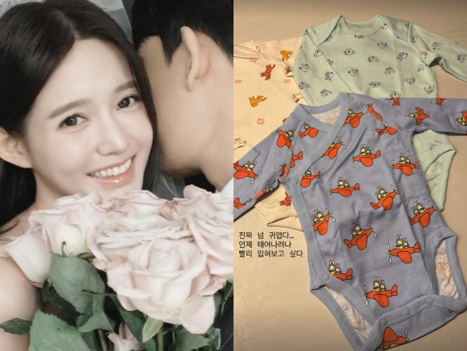 공개된 사진에는 귀여운 캐릭터 패턴이 들어간 푸른색, 민트색, 연한 노란색의 아기 옷이 담겨 있어 눈길을 끈다.