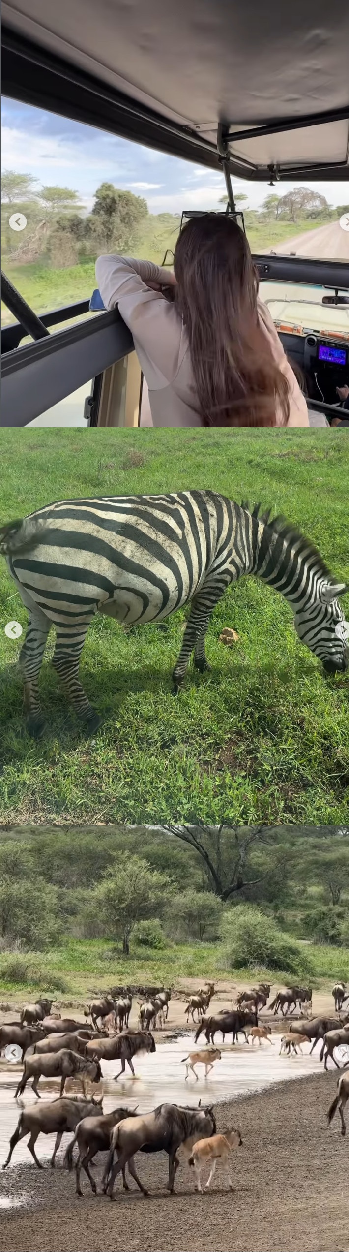 이시영은 "1,2월이 출산 시기라서 출산하는 모습들 만삭의 엄마동물들 그리고 너무 귀여운 새끼들까지"라는 글과 함께 초원을 구경 중인 자신의 모습을 공개했다.