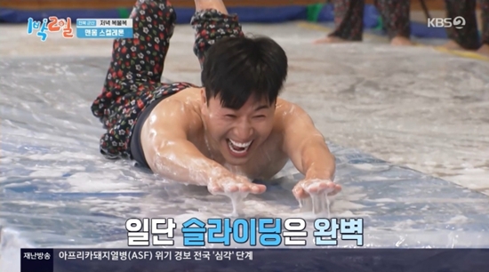 마지막 라운드 '맨몸 스켈레톤'에서는 저녁을 먹기 위한 멤버들의 맨살 투혼 릴레이가 이어졌다. 김종민이 상의를 탈의하고 좋은 기록을 달성하자 딘딘은 물론, 심지어 노출을 극도로 싫어하는 문세윤까지 윗옷을 벗어던지는 보기 드문 장면이 연출돼 웃음을 자아냈다.