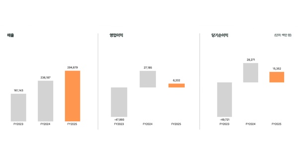 데브시스터즈는 2025년 연간 매출 2,947억 원, 영업이익 62억 원, 당기순이익 154억 원을 기록했다.  매출은 핵심 게임 타이틀인 쿠키런: 킹덤의 연간 수익 성장 및 쿠키런: 브레이버스 카드 게임(이하 쿠키런 카드 게임)의 성공적인 북미 진출에 힘입어 전년 대비 25% 증가했다.