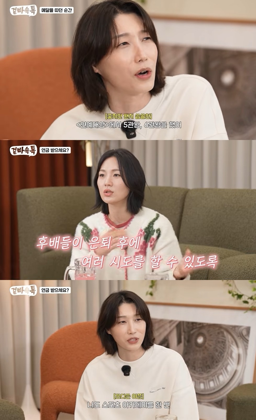 김연경은 "전 여기에 비빌 수 없다. 올림픽 메달이 없기 때문에. 두 분은 올림픽 메달이 있는데, 나는 그 느낌을 모른다"고 한탄했다.