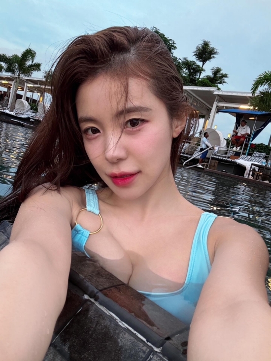 이다혜는 최근 자신의 SNS에 "OK LAH"라는 글과 함께 싱가포르에 있는 마리나 배이 샌즈 호텔 수영장에서 촬영한 사진을 공개했다.