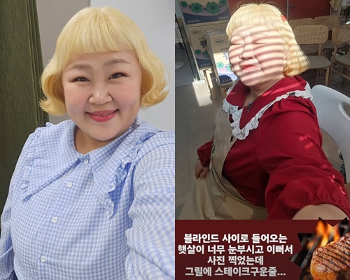 홍윤화는 해당 사진과 함께 “블라인드 사이로 들어오는 햇살이 너무 눈부시고 예뻐서 사진 찍었는데 그릴에 스테이크 구운 줄…”이라는 글을 덧붙이며 특유의 자학 개그로 웃음을 자아냈다. 평범한 일상 속 순간도 자신만의 유머로 풀어내는 센스가 돋보였다.