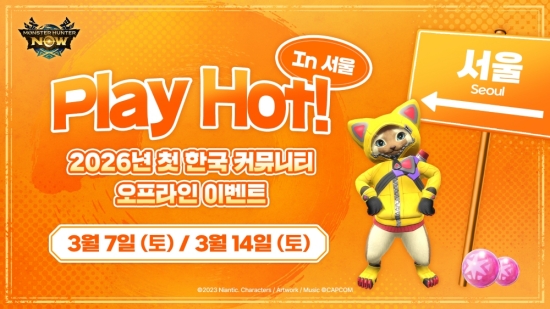 10일 나이언틱(Niantic)은 캡콤(Capcom)과 공동 개발한 리얼 월드 몬스터 수렵 게임 'Monster Hunter Now'(이하 몬스터 헌터 나우)의 2026년 첫 오프라인 커뮤니티 이벤트 'Play Hot!'을 3월 개최한다고 밝혔다.